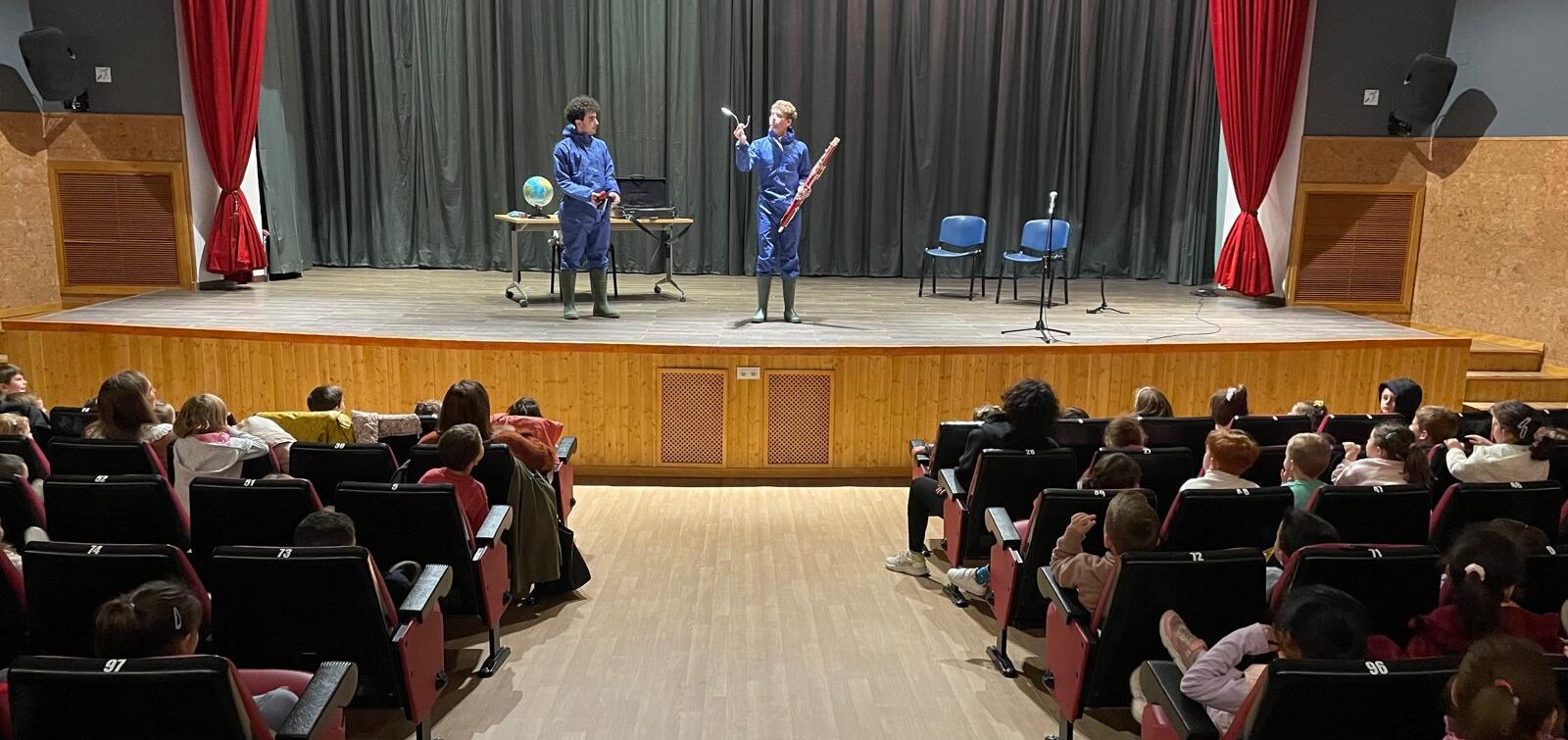 En el CEIP Los Alcalá Galiano ha sido este jueves, 13 de noviembre, cuando todos el alumnado se ha desplazado a la Casa de la Cultura para disfrutar del espectáculo didáctico “Mestizaje“, del dúo artístico Víctor y Ruven.Los niños y niñas de educación Infantil y Primaria, han podido redescubrir el arte flamenco a través de una puesta en escena dinámica, cómica y participativa. Se han aproximado así al sonido más flamenco del fagot e incluso han podido conocer de cerca el baile flamenco.