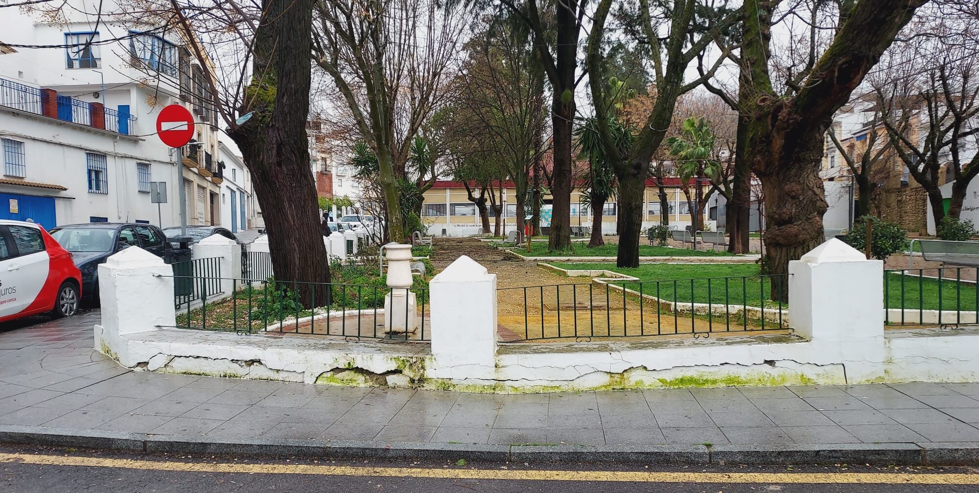 En la parte baja del parque de bancos de Ronda Povedano, junto a la fuente, hay un hundimiento del terreno que requerirá una intervención importante. Personal técnico de Diputación, ha descartado una posible relación con el colector del Arroyo de la Cruz del Muelle.