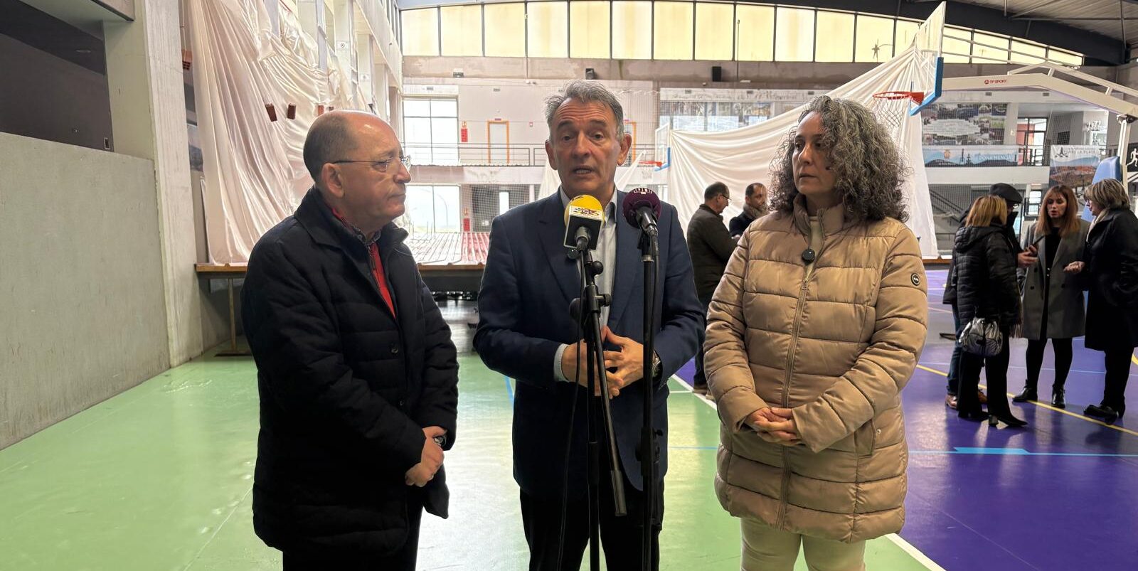 Miembros del equipo de gobierno municipal, encabezados por el alcalde, Salvador Cubero, han mostrado la rotura que sufre esta instalación deportiva, con más de 400 metros cuadrados de cubierta afectada.