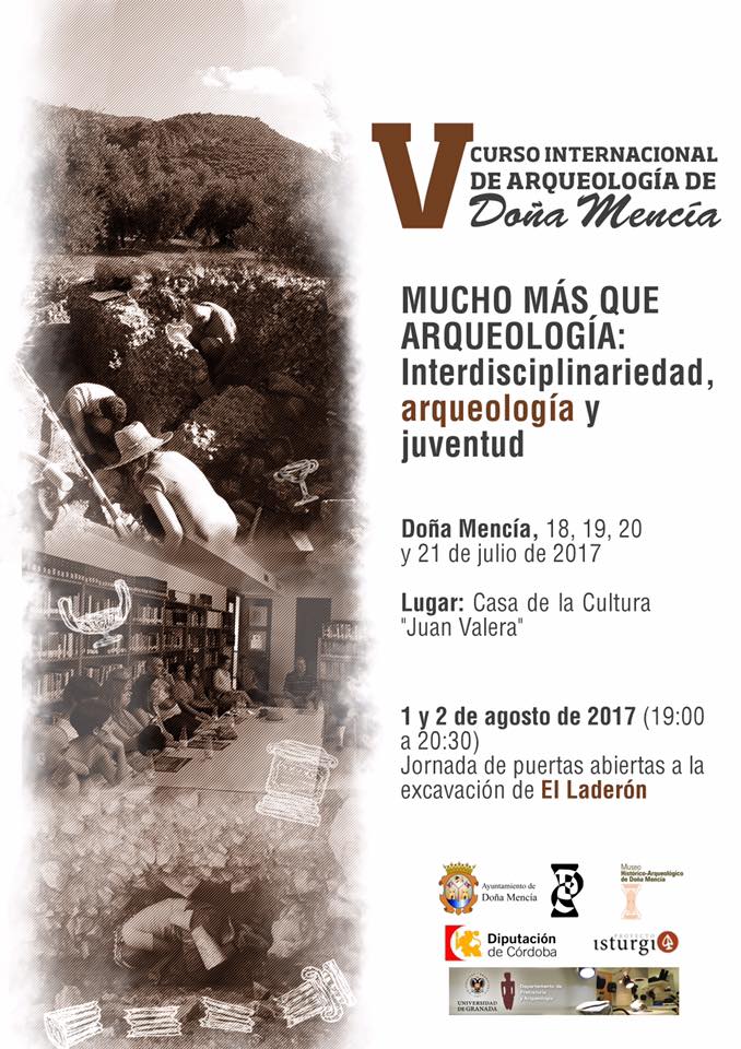 Entre el martes 18 y el viernes 21 de julio la Casa de la Cultura menciana acogerá el V Curso Internacional de Arqueología: Interdisciplinariedad, arqueología y juventud. La actividad contará con tres ponencias diarias, desde las 17´30 horas. En ellas se hablará de campañas de excavación de la provincia de Jaén, de museografía y restauración, también de arqueología funeraria, antropología, colonias romanas y fortificaciones de Córdoba, e incluso del vigente proyecto de investigación que se está llevando a cabo en El Laderón de Doña Mencía.