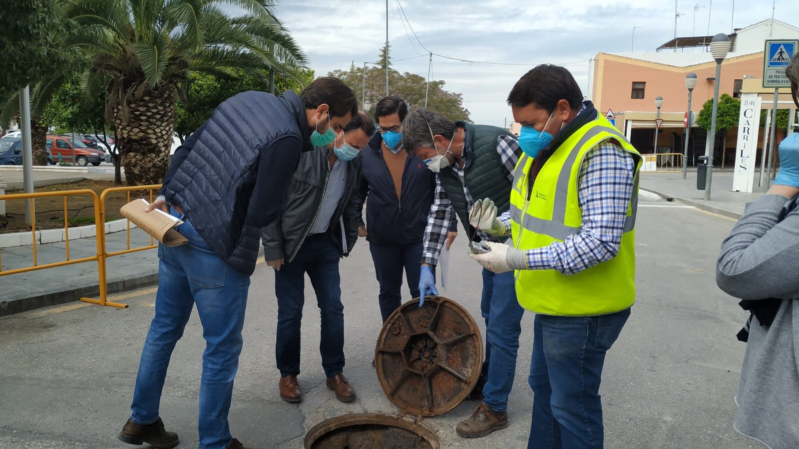 Personal del departamento de Ingeniería Civil de la institución provincial visitó el viernes, 17 de abril, la zona afectada. Lo acompañaron técnicos de la empresa de ingeniería Cemosa, que viene realizando mediciones periódicas en el hundimiento y también miembros del equipo de gobierno y personal técnico municipal. Desde mediados de febrero el espacio afectado, colindante además con el parque infantil, está cortado al paso de vehículos y transeúntes. El Ayuntamiento tomó está decisión tras recibir un estudio de Cemosa que alertaba de la importante filtración de agua que se estaba produciendo y que constataba la gravedad de los movimientos del suelo.