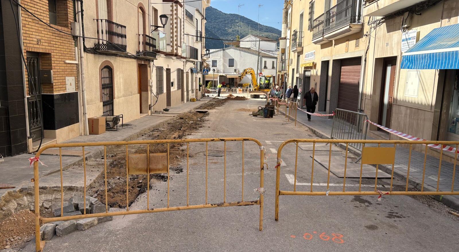Esta calle ha iniciado ya su transformación en plataforma única. La existencia de tuberías de fibrocemento ha obligado a paralizar los trabajos de asfaltado, para sustituir las conducciones de agua, por otras de polietileno.