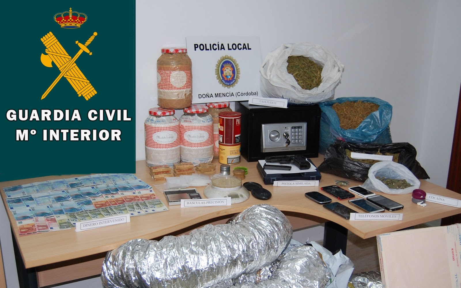 La Guardia Civil ha informado este domingo de la detención de seis vecinos de Doña Mencía como supuestos autores de un delito contra la salud pública por tráfico de drogas y otro de pertenencia a grupo criminal. Las detenciones forman parte de una operación antidroga iniciada meses atrás por la Guardia Civil del puesto de Luque en colaboración con la Policía Local de Doña Mencía. Así lo ha confirmado el jefe de la policía menciana, Miguel Pérez-Vico, quien ha explicado que las investigaciones realizadas han permitido desmantelar dos puntos de venta de droga de este municipio. Desde la jefatura se ha recordado que ya a principios de septiembre hubo una primera detención por tráfico de drogas en el parque municipal. A ello siguió la redada con registros en dos domicilios del 30 de octubre y la toma de declaraciones a testigos, tanto en Doña Mencía como en localidades limítrofes, donde parece ser, también se vendía la droga. El Instituto Armado ha confirmado que durante los registros en las viviendas localizaron e intervinieron una plantación “indoor” desmontada, unos 2,5 kilogramos de marihuana dispuesta para la venta en cogollos, 3 gramos de cocaína dispuesta en dosis, varias básculas de precisión y diversos útiles para la distribución de las sustancias, así como 640 euros en billetes fraccionados, supuestamente procedentes de la venta de drogas, un arma de fuego simulada y varios teléfonos móviles. Desde los citados cuerpos de seguridad explican que la operación ha permitido identificar dos grupos distintos perfectamente estructurados. La benemérita comunicaba que “en un primer escalafón se encontraban los dos cabecillas que eran los encargados de adquirir la droga y en un segundo escalafón estaban los distribuidores, algunos de ellos menores de edad“. Desde la Policía Local han aclarado que presuntamente uno de los grupos se centraba en la venta de marihuana y el otro grupo se dedicaba a la venta cocaína. La policía ha resaltado que aunque son seis los detenidos, podrían resultar más personas implicadas. Los acusados están en estos momentos en libertad a la espera de la celebración del juicio. La benemérita ha indicado que “además de desmantelar dos puntos de venta de droga establecidos en las inmediaciones del casco urbano de la localidad, se ha conseguido retirar del mercado una importante cantidad de droga, que iba a ser destinada a la venta al menudeo a los jóvenes de la comarca”. Detenidos, droga y efectos intervenidos, han sido puestos a disposición de la Autoridad Judicial. La investigación continúa abierta.